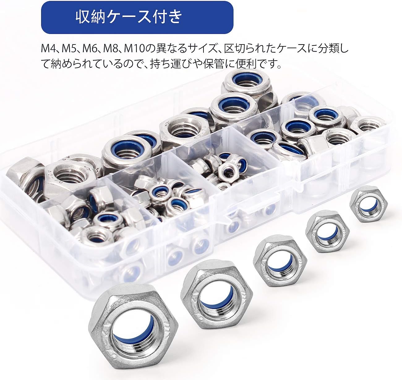 + Free Shipping六角ロックナットセット 六角ナット ロックナット 304ステンレス製 M4、M5、M6、M8、M10 六角形 六角ロックナットキット110個入り