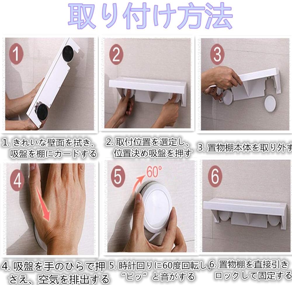 【 浴室用ラック 穴不要 吸盤粘着式】:吸盤が特別な技術を採用して、強力接着剤が付き、最大限に浴室の壁に吸着され、強力な固定を達成することがない!ラックの耐荷重は約5kgてもずれ落ちにくい!、絶対落ちない!吸着力を高める。水洗いして繰り返し使用できます。